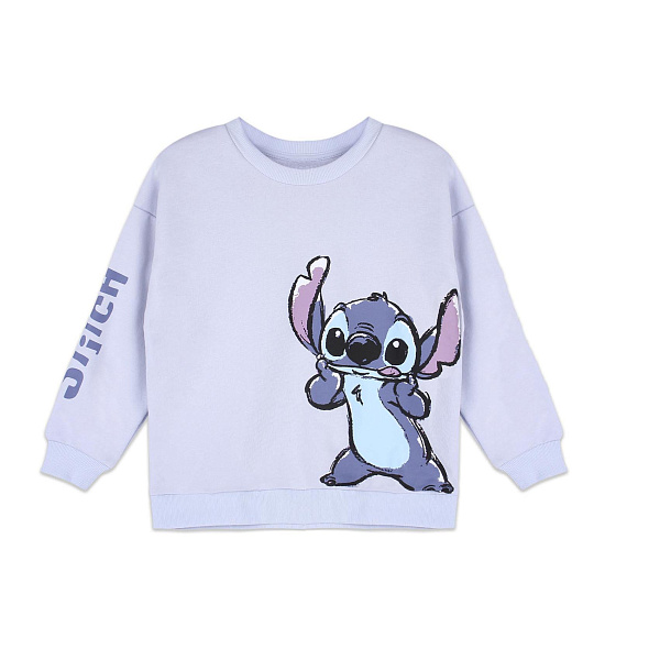 Легкая толстовка для девочек выполнена в нежном фиолетовом цвете и украшена ярким принтом со Стичем, придающим изделию забавный и радостный вид. На рукаве присутствует надпись, гармонично дополняющая дизайн толстовки.