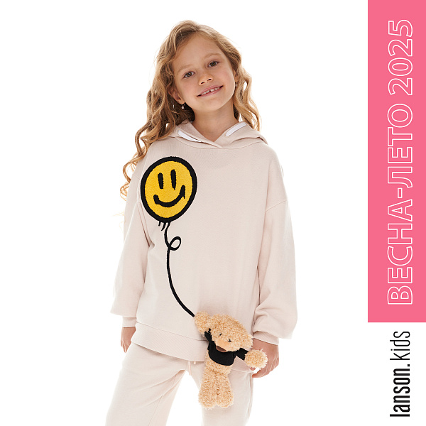 Толстовка Lanson Kids с рисунком в виде шара-смайлика и декоративным мишкой бежевая