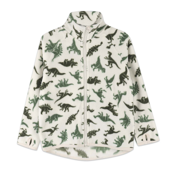 Утепленная флисовая толстовка для мальчика выполнена в бежевом цвете с ярким принтом динозавров. Этот дизайн добавляет изделию игривости и делает его интересным для юных исследователей.