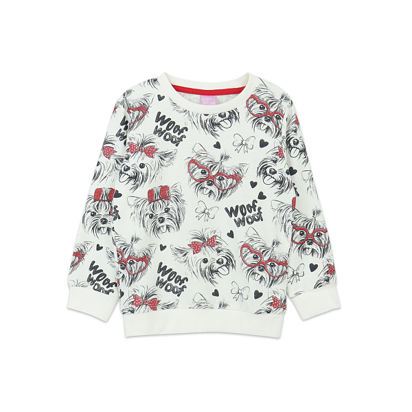 Утепленная толстовка согреет малыша в прохладную погоду, подарит тепло и уют. Кофта пошита из натурального хлопка, материал хорошо пропускает воздух, мягкий и приятный на ощупь. Утепленная подкладка выполнена из полиэстера. Крой толстовки свободный и не сковывает движения, рукава длинные. Низ кофты и рукавов дополнен эластичными манжетами, они плотно прилегают к телу и не пропускают холодный воздух. Забавный принт завершает дизайн кофты: бежевая кофта усеяна мордочками йорка с красными очками и бантиком, принт дополнен надписями «Гав-гав». Рекомендовано для детей ясельного возраста.