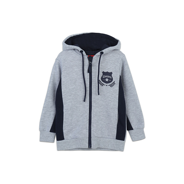 Толстовка Lanson Kids утепленная с капюшоном и черными вставками серая