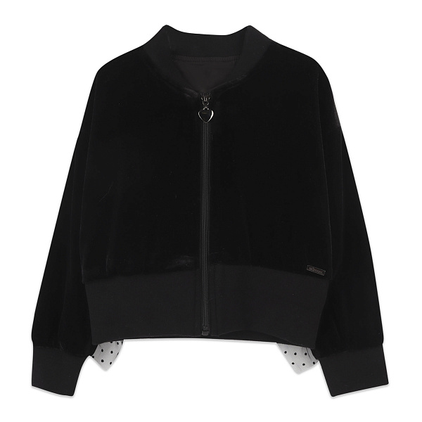 Черная утепленная толстовка с фатиновыми рюшами на рукавах для девочки станет ярким и стильным элементом детского гардероба. Мягкий полиэстер с велюровой текстурой обеспечивает комфорт и уют в холодное время года. Удобная молния по всей длине с декоративным элементом в виде сердечка позволяет легко надевать и снимать толстовку. Манжеты и нижний край выполнены из трикотажной резинки, что придает изделию дополнительный комфорт и предотвращает проникновение холодного воздуха.
