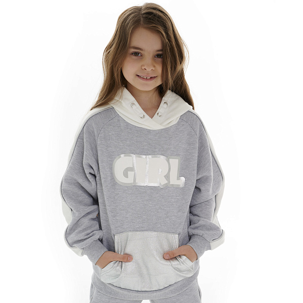 Утепленная толстовка в спортивном стиле понравится любой девочке дошкольного возраста. Модель свободного кроя без застежки имеет накладной карман на животе и глубокий капюшон. В качестве украшения использована крупная графическая надпись на груди. Универсальная цветовая гамма позволяет удачно комбинировать изделие с любыми элементами гардероба. Это отличное решение для прогулок в прохладную погоду.