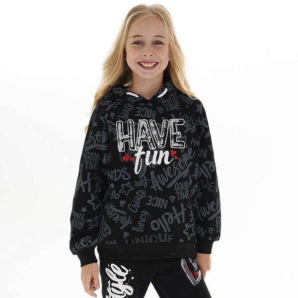 Толстовка Lanson Kids утепленная с капюшоном и надписью Have fun черная