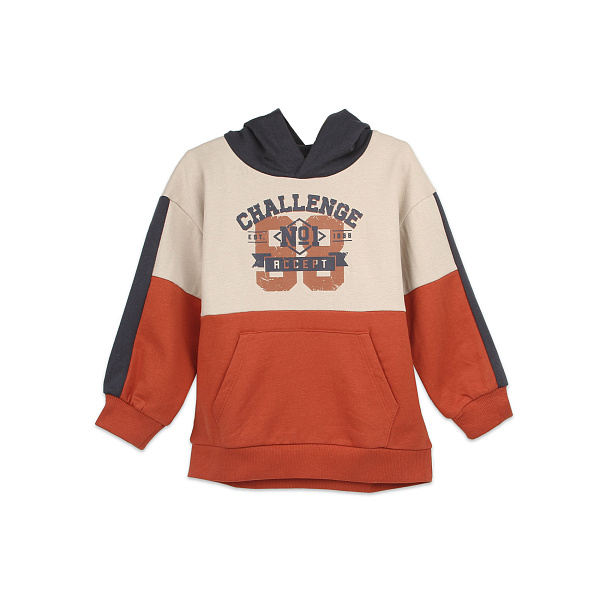 Стильная утепленная толстовка свободного кроя порадует непоседливых ребят, которые любят активно двигаться. Модель выполнена в сочетании черного, красного и бежевого, не сковывает движения. Низ длинных рукавов дополнен эластичными манжетами, они плотно прилегают е телу и препятствуют проникновению холодного воздуха. Глубокий черный капюшон бережно укроет голову от ветра и холодного воздуха. Спортивный принт на передней стороне вместе со сквозным карманом завершают дизайн толстовки. В основе ткани использован натуральный хлопок и полиэстер.