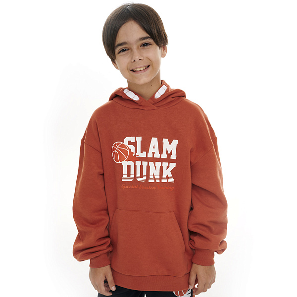 Удобная утепленная толстовка станет удачным дополнением гардероба мальчика дошкольного возраста. Модель универсальна в подборе сочетаний, имеет глубокий капюшон. Трикотажная резинка на рукавах и по нижнему краю гарантирует комфортную посадку. Изюминкой является карман кенгуру, который понравится любому ребенку. В качестве украшения применяется контрастное графическое изображение, нанесенное методом термопечати.