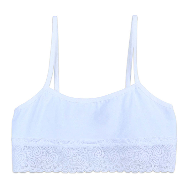 Бельевой топ LUXXA выполнен в белом цвете. Модель имеет тонкие бретели и кружевную вставку снизу. Этот топ подходит для ежедневной носки под различную одежду. Кружево добавляет изделию изящный вид.