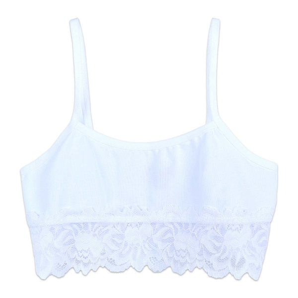 Бельевой топ LUXXA выполнен в классическом белом цвете. Модель имеет тонкие бретели и дополнена кружевной отделкой. Такой топ подходит для ежедневного использования под одеждой. Кружево создает изящный декоративный элемент.