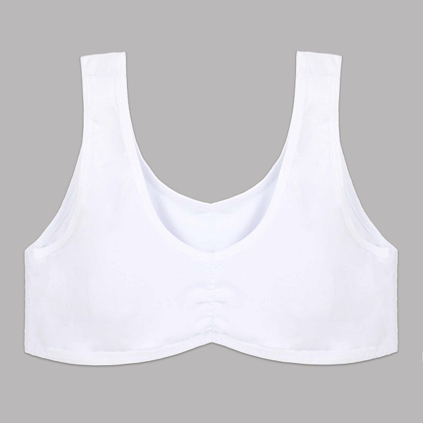 Топик для девочки имеет простой и стильный вид: белый цвет делает его универсальным — он легко сочетается с любой одеждой и подходит для разных ситуаций, будь то спорт, активные игры или повседневная одежда. Фасон топа — классический, с широкими лямками и открытой зоной декольте, что обеспечивает свободу движений и комфорт. Крой свободный, без лишних деталей, что позволяет использовать его как базовую вещь.