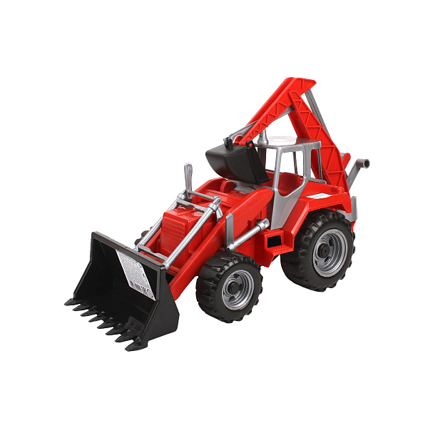 Трактор-погрузчик привлекает внимание ярким сочетанием цветов и реалистичным исполнением. Каждый мальчик старше 3 лет по достоинству оценит рифленые колеса, подвижный ковш и отвал. Привести в движение стрелу экскаватора несложно с помощью пары рычагов. Увлекательную игру можно устроить дома и на улице. Такие развлечения положительно влияют на развитие воображения, моторики рук, пространственное и логическое мышление. Игры со строительной техникой надолго займут ребенка, подарят немало позитивных эмоций. Для изготовления изделия использована прочная пластмасса, которая не боится механического воздействия. Ее несложно отмыть после прогулки.