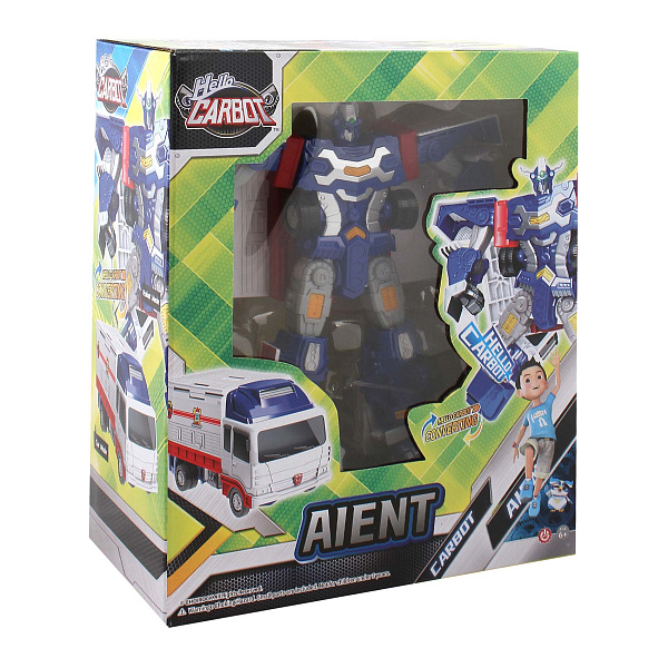 Трансформер Aient высотой 21 см выполнен в виде яркого и стильного грузовика, который трансформируется в робота. В автомобиле преобладают белый, красный и синий цвета с чёткими геометрическими линиями. В режиме робота — это мощный и выразительный персонаж с синими ногами и руками, серыми деталями и яркими акцентами на корпусе. Игрушка выглядит современно и динамично, привлекая внимание своей детальной проработкой и плавностью форм.