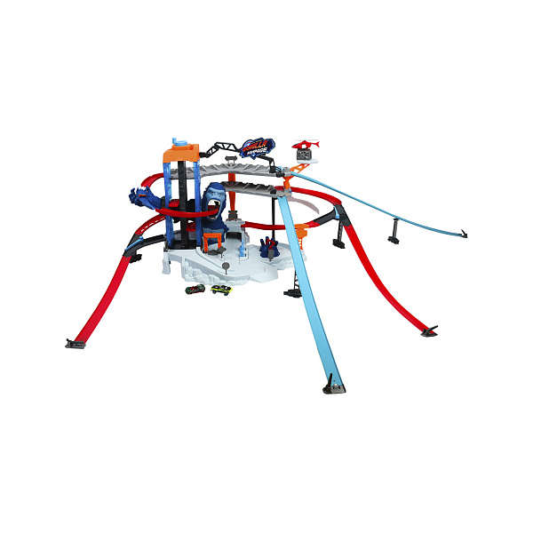 С треком-парковкой METAL MACHINES «Атака гориллы» игра в гонки станет динамичнее и веселее. В комплект выходят гоночный трек общей длиной 5,4 метра, 2 машинки, вертолет и фигура гориллы. Свирепое животное захватило парковку, и только истиные смельчаки смогут проскользнуть мимо его пасти! Трехуровневая парковка дополнена спусками и дорогами, по которым машинкам предстоит уезжать от гориллы.