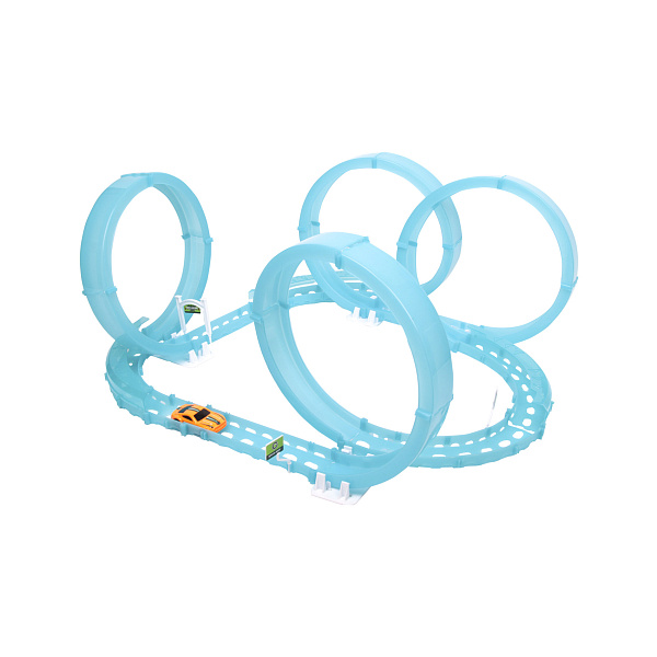 Механическая моторизированная машинка способна выполнять головокружительные трюки, разгоняясь по специальной трассе. В конструкцию трека входят 4 воздушные петли, прямые участки трассы, арка и дорожный знак. Устроить увлекательную игру дети старше 3 лет смогут самостоятельно. Такое развлечение надолго займет внимание мальчика, подарит ему немало ярких эмоций. Манипуляции с автомобилем положительно влияют на моторику рук, улучшают координацию движений, стимулируют воображение, пространственное и логическое мышление, память и речь. В производстве использована прочная сертифицированная пластмасса, которая устойчива к механическим нагрузкам. В составе материала нет токсичных веществ. Он чудесно очищается от пыли и загрязнений. Продукция одобрена Таможенным союзом.