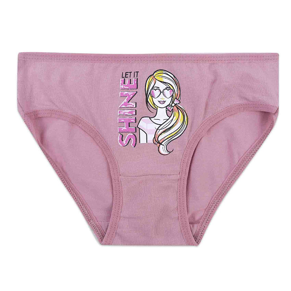 Трусы для девочки имеют розовый цвет. Передняя панель украшена принтом куклы и надписью Let it Shine. Принт яркий и четкий. Изделие надевается легко. Трусы подходят для повседневного ношения. Эластичные края держат форму. Ткань мягкая на ощупь.