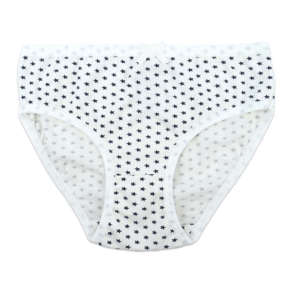 Трусы для девочек выполнены в молочном цвете с мелким принтом из черных звездочек, создающим игривый и оригинальный дизайн. Модель украшена небольшим бантиком, придающий изделию аккуратность и нежность. Удобный крой и эластичные окантовки обеспечивают комфортную посадку и свободу движений.
