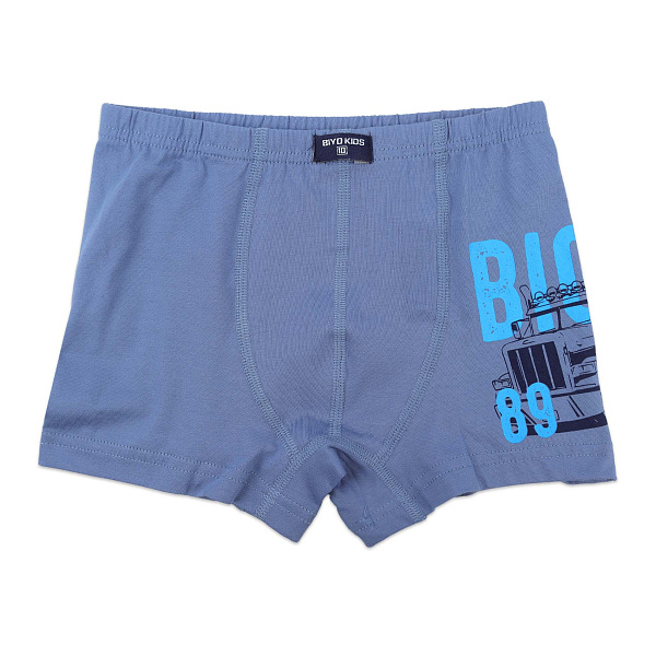 Трусы-боксеры для мальчиков выполнены в синем цвете с ярким принтом грузовика и цифрой «89». Модель обладает удобной и эластичной посадкой благодаря мягкой резинке на поясе и продуманному крою, обеспечивающему комфорт в течение всего дня.