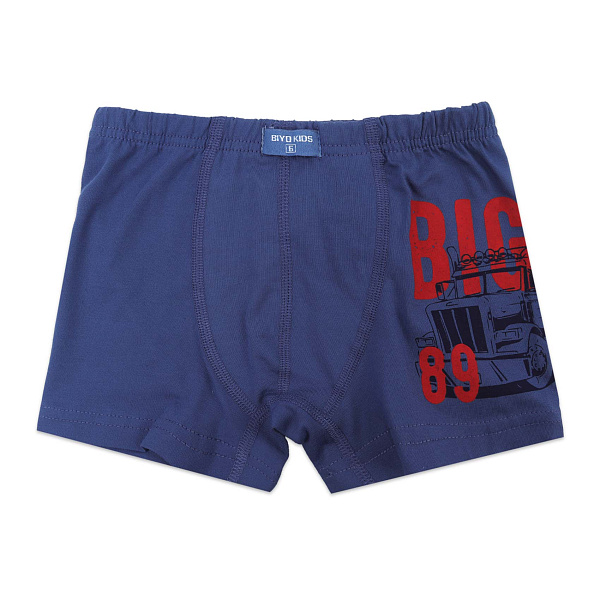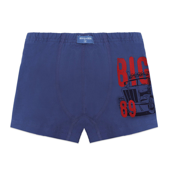 Трусы-боксеры BİYOKİDS имеют глубокий синий цвет. На основном фоне расположен контрастный принт с изображением крупного грузовика. Классический крой делает трусы удобными для повседневного ношения.