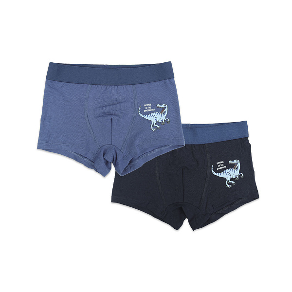 Оригинальный крой боксеров разработан с учетом особенностей детского тела. Белье с комфортной посадкой не ограничивает движения, надежно удерживается широкой эластичной резинкой. Для пошива применяется устойчивый к износу трикотаж. Ткань состоит из 95% натурального хлопка и 5% эластана, хорошо пропускает воздух, долго сохраняет насыщенность цвета и изначальную форму. Ребенок одобрит практичный цвет и графический рисунок, изображающий динозавра. Комплект из пары трусов является практичным приобретением на любой сезон.