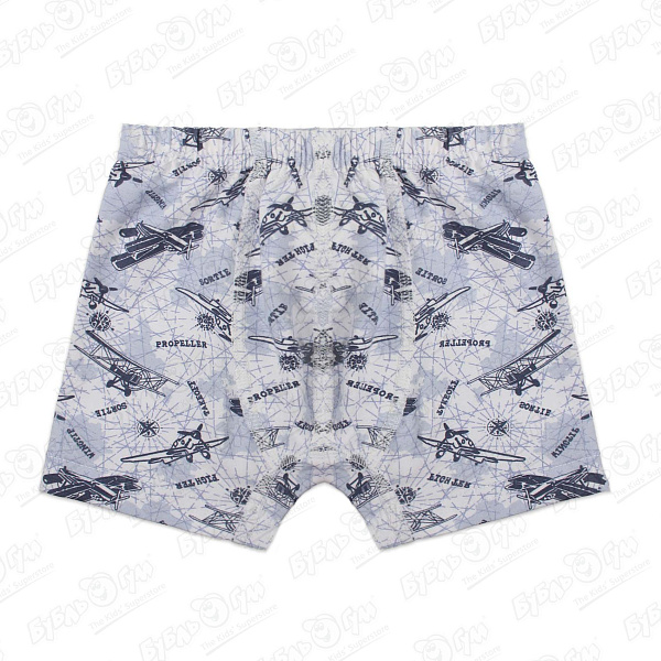 Детские трусы-боксеры с принтом в виде разных моделей самолетов станут ярким и удобным дополнением в гардероб активного мальчика. Белый фон с синими и серыми элементами придаёт изделию интересный и динамичный вид. Особая фактура ткани и аккуратный рисунок делают трусы не только привлекательными, но и приятными на ощупь.