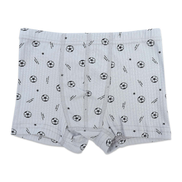 Трусы-боксеры для мальчиков выполнены из 100% хлопка, что обеспечивает максимальную мягкость и отличную воздухопроницаемость ткани. Модель серого цвета украшена принтом с изображением футбольных мячей и звезд, придающим изделию спортивный и динамичный вид. Классический фасон с эластичным поясом обеспечивает комфортную посадку и свободу движений.