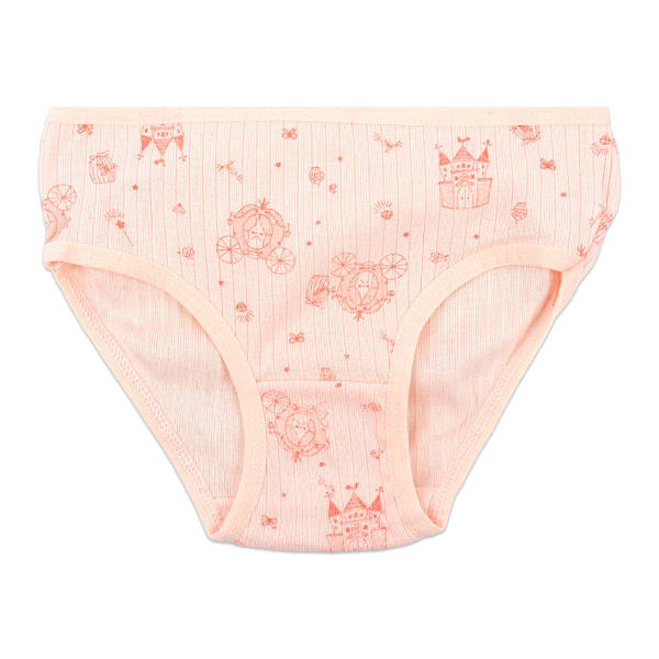 Трусы для девочек выполнены из хлопка в нежном персиковом цвете с ярким принтом в виде замков, карет и небольших декоративных элементов. Модель отличается мягкой и приятной к телу тканью, обеспечивающей комфорт и хорошую воздухопроницаемость. Удобный крой и аккуратная обработка краев позволяют изделию идеально сидеть и не сдавливать ребенка, что делает трусы отличным выбором для повседневной носки.