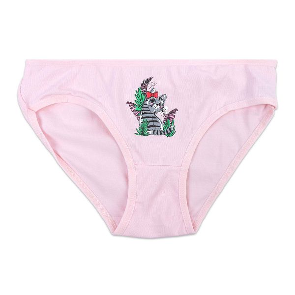 Трусы выполнены из ткани розового цвета.На передней части расположен милый рисунок кота. Полотно содержит высокий процент хлопка. Натуральный материал хорошо пропускает воздух. Добавление эластана придает изделию необходимую растяжимость. Трусы удобно сидят по фигуре и сохраняют форму после стирки. Ткань остается мягкой и не раздражает кожу.