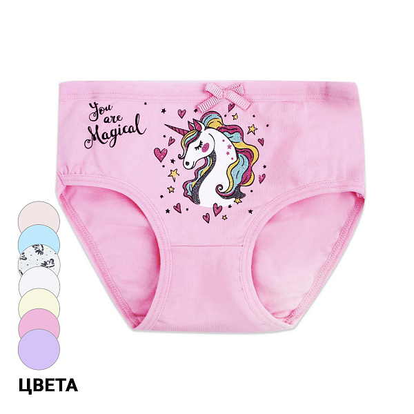 Трусы с высокой посадкой предназначены для девочек дошкольного возраста. Крой по традиционной схеме гарантирует комфортную посадку на фигуре любого типа. Упругая резинка не врезается в живот, но надежно фиксирует бельё. Соединительные и отделочные швы выполнены аккуратно, не натирают кожу.