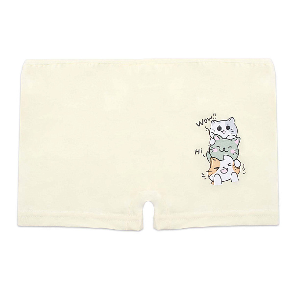 Трусы-шорты для девочки пастельно-желтого цвета станут удобным и практичным дополнением в повседневный гардероб маленькой модницы. Сбоку изображен рисунок трех забавных котят, которые поднимут настроение. Мягкая и приятная на ощупь ткань обеспечивает комфорт при носке и позволяет коже дышать.
