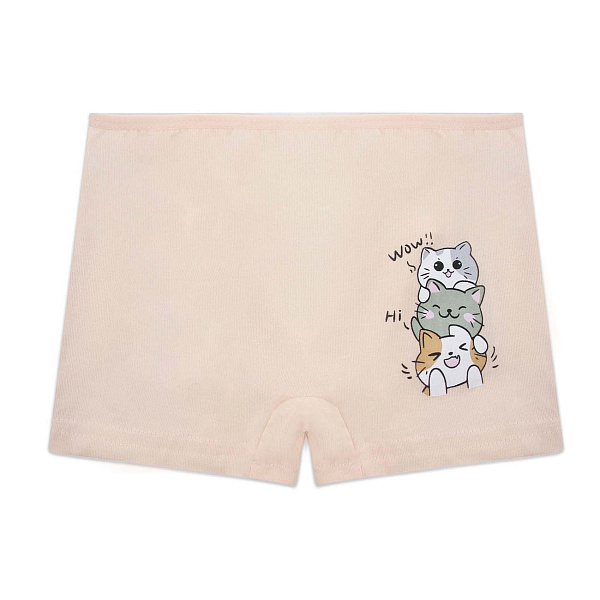 Милые шорты-трусы персикового цвета станут удобным и практичным дополнением в повседневный гардероб маленькой модницы. Сбоку изображен рисунок трех забавных котят, которые поднимут настроение. Мягкая и приятная на ощупь ткань обеспечивает комфорт при носке и позволяет коже дышать.
