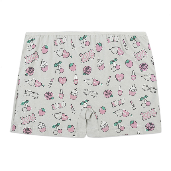 Тонкий эластичный пояс удерживает трусы на теле и не давит на кожу. Узор из розовых сердечек, надписей и сладостей на ярком фоне создает веселый и игривый вид, который будет радовать глаз и поднимать настроение.