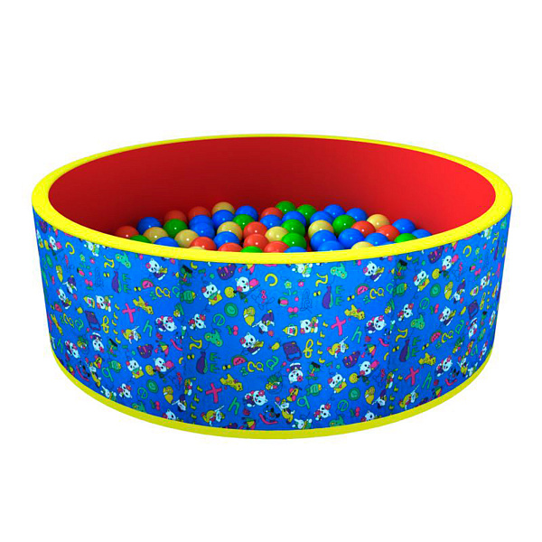 Большой мягкий бассейн круглой формы диаметром 1 метр выполнен из влагостойкой ткани с красочным принтом и упругого поролонового наполнителя. В комплект поставки входит 150 цветных пластиковых шариков желтого, красного, синего и зеленого цветов. В процессе увлекательной игры с шарами ребенок не только развивает интеллект, но и совершенствует свои спортивные навыки. Бассейн не занимает много места и подойдет даже для небольшой квартиры. Благодаря прочным материалам, устойчивым к воздействиям внешней среды, бассейн можно использовать для игр на улице, например, на даче. Для хранения и транспортировки комплекса предназначена специальная комфортная сумка с ручками и ремень для фиксации.