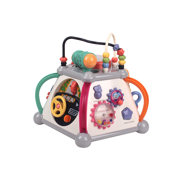 Сложное устройство пирамидки заинтересует детей с полутора лет. Пирамида с устойчивым основанием несет функцию развивающей игрушки, дополнена звуковым сопровождением. Каждая грань имеет устройство, оснащена подвижными элементами разной геометрической формы. В верхней части на изогнутых направляющих помещены деревянные бусины, которые можно перемещать в любую сторону. Полезным дополнением является молоточек и миниатюрный телефон с 4 кнопками. Игра с пирамидой стимулируют мелкую моторику рук и познавательную активность. Игра надолго увлечет малыша, положительно повлияет не его настроение. Прочный пластиковый корпус без труда очищается от пыли, стойко переносит ударные нагрузки. Для полноценной работы необходимы сменные батарейки.