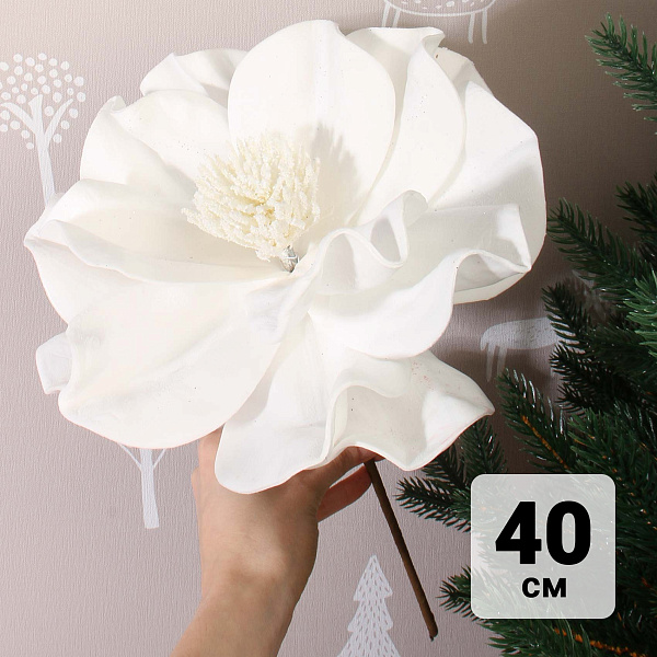 Изящное декоративное изделие — цветок в стиле хюгге, выполненный из матового пластика белого цвета. Диаметр цветка составляет 15 см, высота 40 см. Пышные, мягко изогнутые лепестки создают натуральный и уютный образ, идеально вписывающийся в интерьерные решения, пропитанные теплом и гармонией. Длинный стебель обеспечивает удобство в использовании для декорирования помещений, флористических композиций или праздничных композиций.