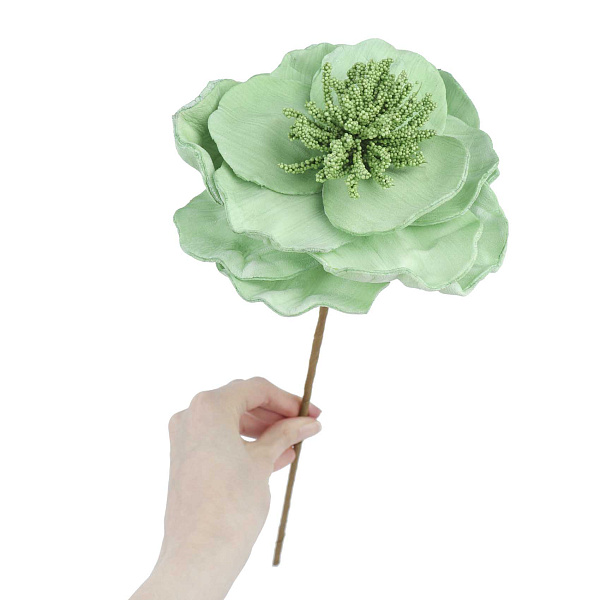 Декор цветок матовый салатового цвета — стильный декоративный элемент для создания уютного интерьера в стиле хюгге. Изготовлен из пластика, что обеспечивает долговечность и легкость в уходе. Диаметр цветка составляет 15 см, а общая высота с длинным стеблем — 41 см, благодаря чему изделие гармонично впишется в любые флористические композиции и декор интерьера. Матовая поверхность и нежный салатовый оттенок придают цветку естественный и мягкий вид, который оживит пространство и добавит свежести. Универсальный дизайн позволяет использовать цветок как самостоятельный акцент или в сочетании с другими декоративными элементами.