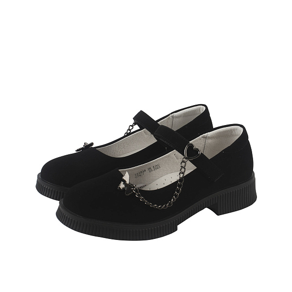 Туфли BARBARIS бархатные на липучке с декором цепочка с бабочкой черные
