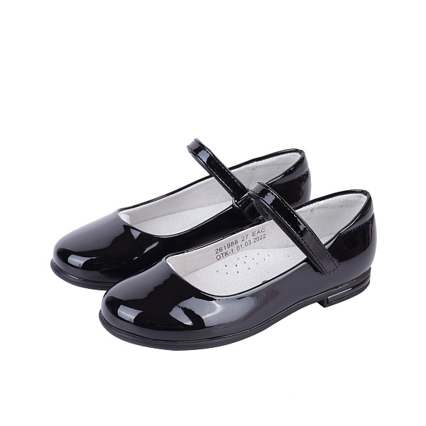 Классические черные лаковые лодочки – это идеальный вариант нарядной обуви. Такие туфли подойдут и для повседневной носки, и под праздничное платье на мероприятиях. Лаконичный дизайн туфель сохраняется во всем: в гладких лаковых ремешках на липучке, в лаковых полосках-вставках на каблучках. Туфли изготовлены из искусственной кожи, однако стельки и подкладка сделаны из натуральной кожи, что обеспечивает ребенку комфорт в течение долгой носки. Круглый нос обуви защищает пальцы ног и в то же время не пережимает стопу.