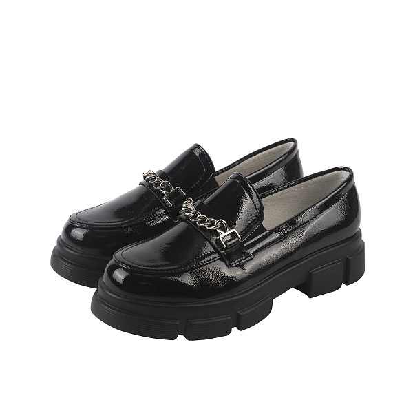 Декоративная цепочка на передней части придает туфлям современный и стильный вид. Прочная подошва из полиуретана обеспечивает устойчивость и способствует удобству при ходьбе по разным поверхностям, минимизируя нагрузки на стопу.
