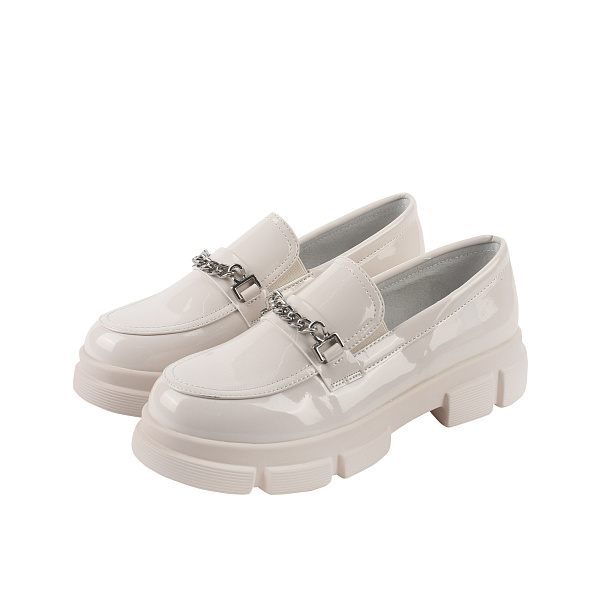 Туфли BARBARIS лоферы лаковые с декором цепочка бежевые