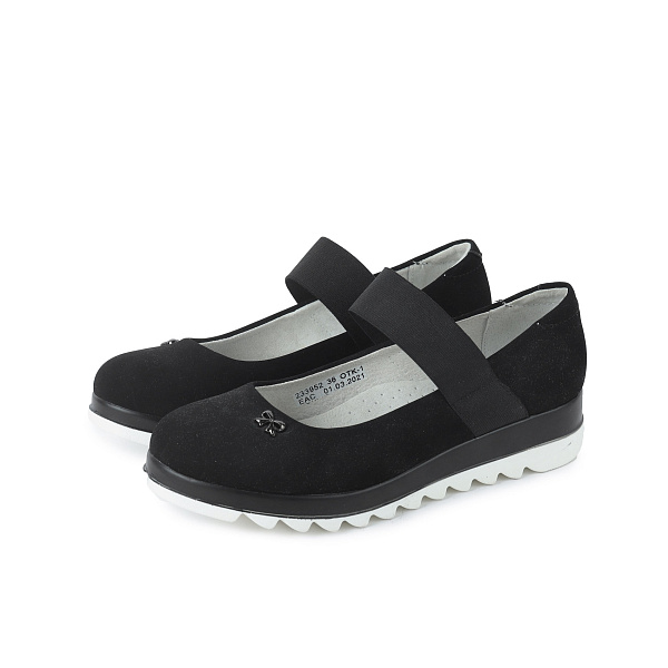 Черные школьные туфли для девочек бренда «Barbaris» с декоративным серебристым бантиком и белой рифленой подошвой станут прекрасным подарком для вашей маленькой модницы.