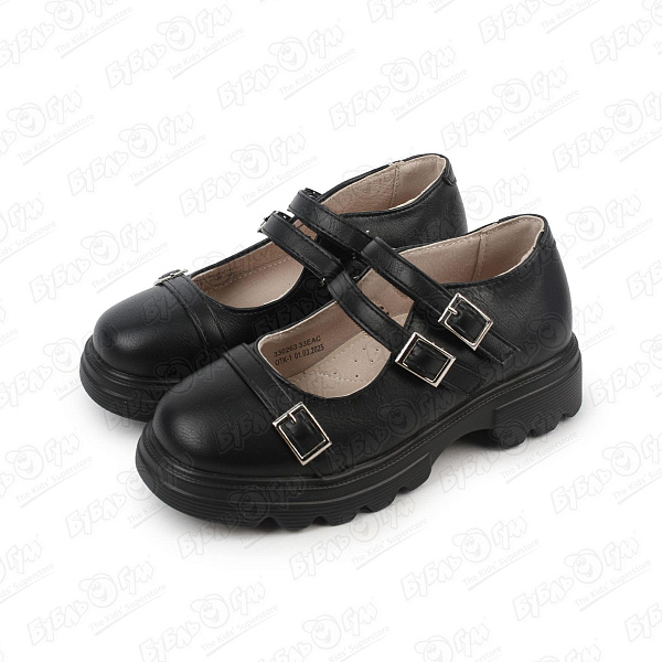 Туфли для девочки выполнены в классическом черном цвете из искусственной кожи, что обеспечивает стильный внешний вид и простоту ухода. Модель с двумя аккуратными ремешками с металлическими пряжками, которые обеспечивают хорошую фиксацию и комфорт при носке.
