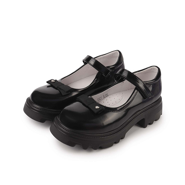 Школьные туфли для девочки из искусственной кожи с натуральной кожаной подкладкой и стелькой — это стильное и практичное решение для повседневной школьной носки. Черный верх выполнен из прочного материала, который легко чистится и сохраняет свой внешний вид на протяжении всего учебного года.