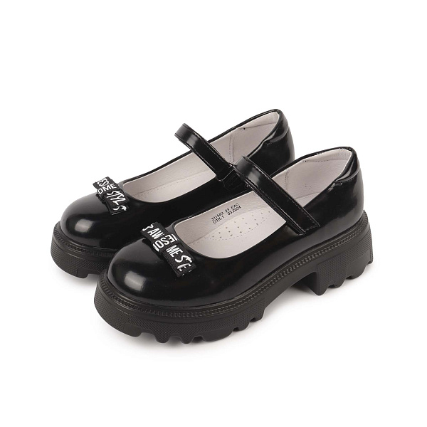 Эти черные туфли для девочек сочетают стиль и удобство. Верх выполнен из качественной искусственной кожи, придающей обуви элегантный внешний вид. Внутренняя часть и стелька изготовлены из натуральной кожи, что обеспечивает комфорт и позволяет ногам дышать в течение дня. Удобное крепление на липучке гарантирует надежную фиксацию на ноге, а также простоту и быстроту надевания.