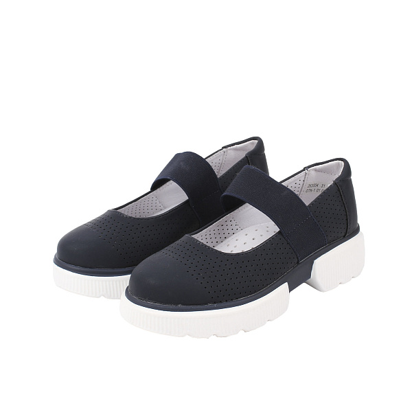 Комфортные и стильные туфли предназначены для повседневного образа маленькой модницы в школу. Они пошиты из кожи и декорированы перфорацией по всему периметру. Фиксация на ноге осуществляется за счет широкой эластичной резинки, с е помощью ребенок сможет обуваться за считанные секунды. Белая подошва из полиуретана разделена на две части, фиксирующие носок и пятку девочки. Внутри туфель – белая подкладка и стелька с анатомически правильной формой из натуральной кожи. Задник усилен дополнительной кожаной вставкой, носок закрытый. Идеальный выбор для ежедневных походов на школьные занятия.