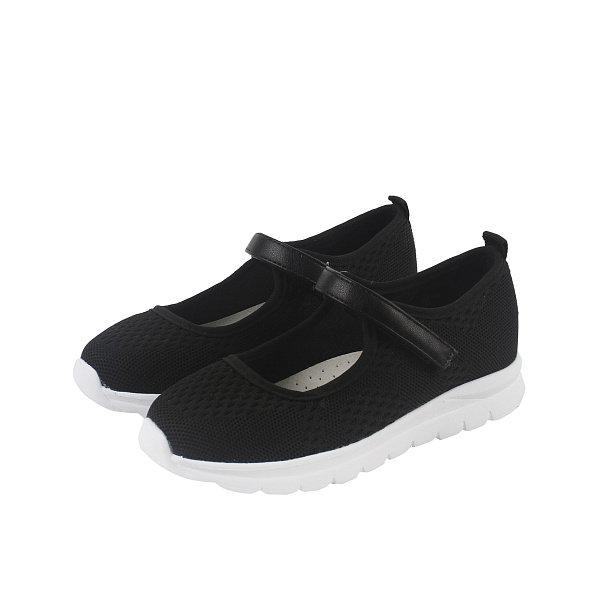 Черные туфли для девочек идеально подходят для школьной сменки, объединяя комфорт и практичность. Верх изготовлен из легкого текстиля, обеспечивающего воздухопроницаемость и легкость в уходе.