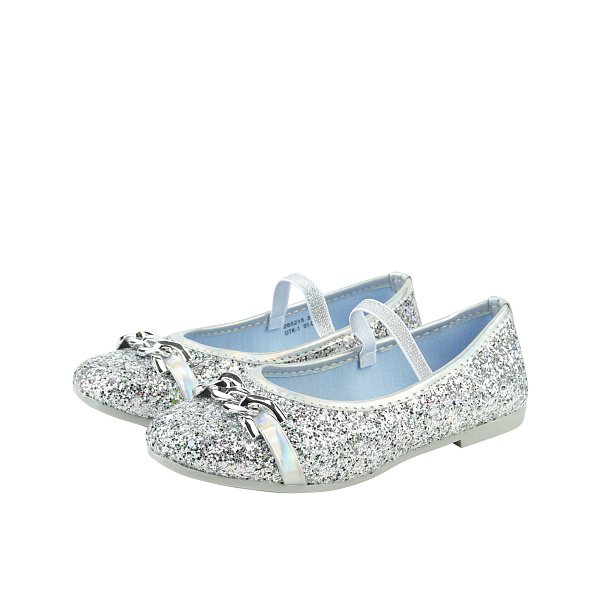 Невероятно блестящие и праздничные туфли точно пригодятся при подборе красивого и торжественного образа для маленькой модницы на День Рождения или Новый Год. Модель застегивается на тонкую застежку-резинку, поэтому обувь не слетает с ножки ребенка во время активных игр или танцев. Носок украшена имитацией цепи с голограммной поверхностью – такая маленькая, но красивая деталь точно понравится вашей малышке. Материал верха текстильный, подкладка и стелька пошиты из ХБ 80%. Подошва изготовлена из ТПР, поэтому обувь не скользит на поверхностях и обеспечивает комфорт ногам. Туфли ярко блестят на солнце при передвижении ребенка благодаря щедрой обсыпке глиттером по всей поверхности.