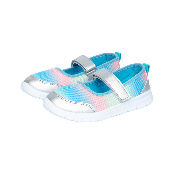 Туфли для девочки дошкольного возраста привлекают внимание радужным сочетанием ярких цветов. Модель универсальна в применении, выручит на улице и дома, успешно справится с функцией сменной обуви.