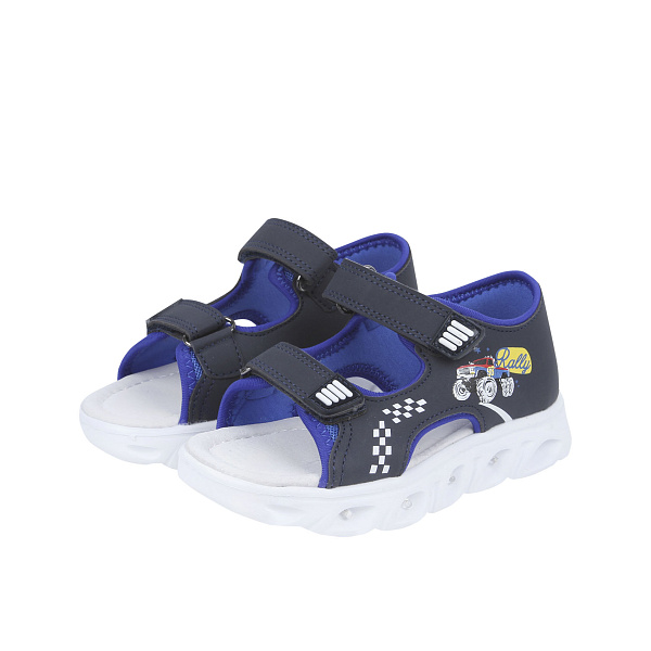 Рифленая подошва из ЭВА (этиленвинилацетата) служит отличным амортизатором, равномерно распределяет нагрузку. Встроенные светодиоды поднимут настроение всем окружающим, развлекут ребенка.