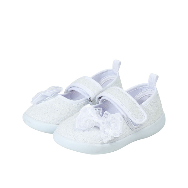 Ажурные туфли понравятся каждой малышке своим внешним видом. Верх обуви изготовлен из текстиля и украшен блестками. Нос обуви закругленный и украшен изящным белым бантом. Регулируемая застежка-липучка плотно фиксирует туфельку на ноге и облегчает обувание. Стелька и подкладка выполнены из хлопчатобумажной ткани. Материал отлично впитывает влагу, пропускает воздух и обеспечивает ногам комфорт в носке. Белая рельефная подошва из ПВХ не утяжеляет обувь и устойчива к истиранию.