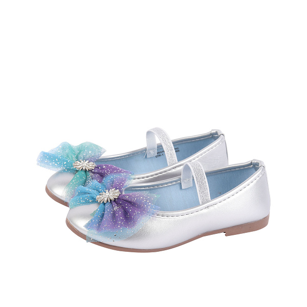 Туфли Pasito с эластичным ремешком и с ярким объемным бантом серебряные