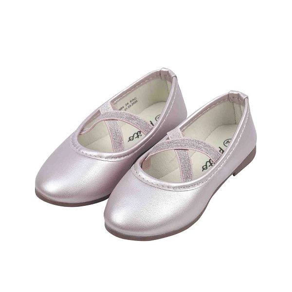 Туфли для девочки выполнены из высококачественного материала – верх изготовлен из искусственной кожи приятного розового цвета с легким блеском, что придает обуви изысканный и аккуратный внешний вид. Модель оснащена эластичными блестящими ремешками, перекрещивающимися поверх подъема, которые обеспечивают надежную фиксацию ноги и удобство при носке.